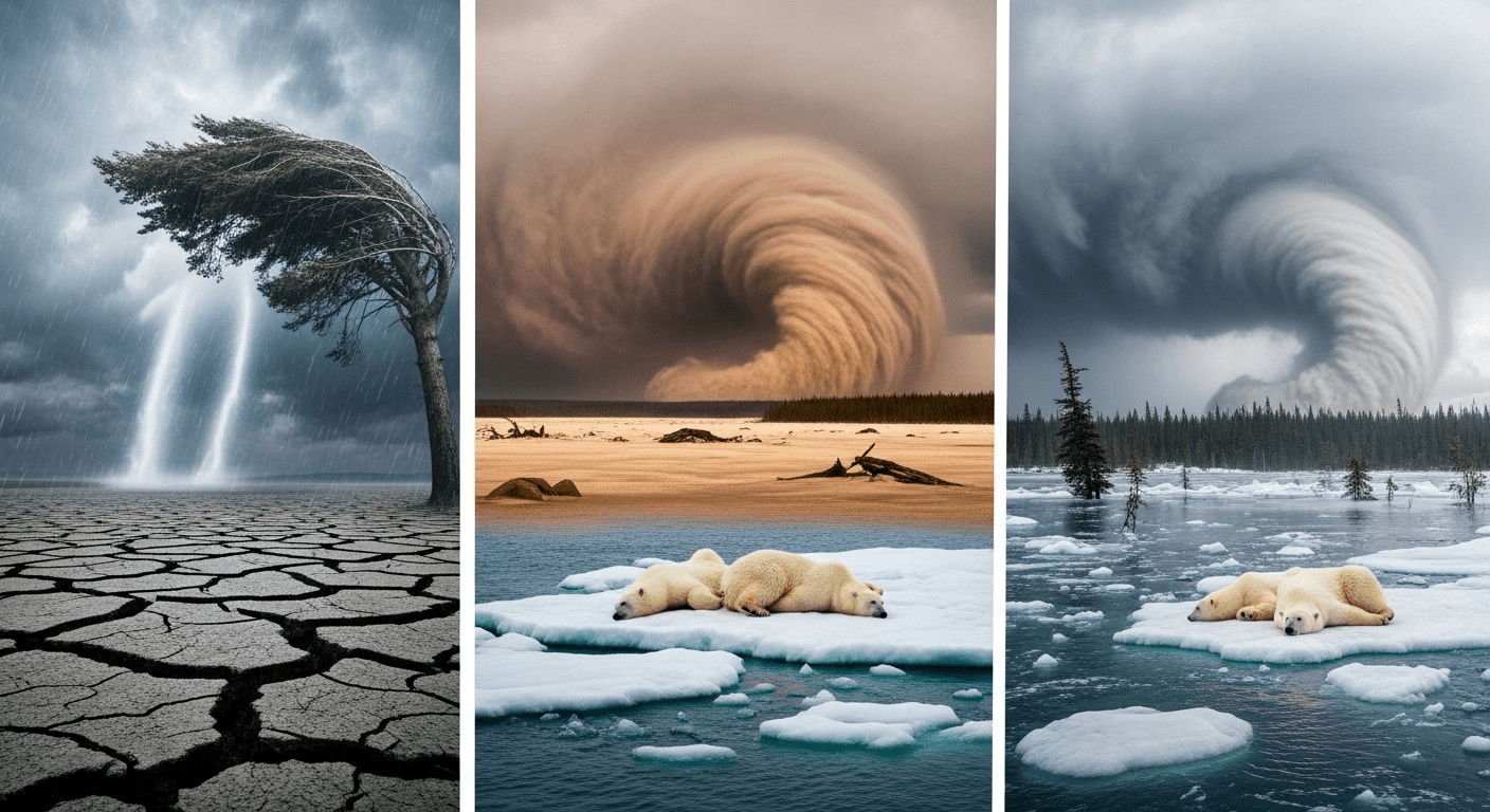 Entre os eventos climáticos extremos que estão se intensificando estão as enchentes, secas severas e incêndios florestais. Este cenário acaba por impactar diretamente a vida de milhões de pessoas, causando deslocamentos humanos e crises alimentares. A situação é particularmente alarmante em regiões vulneráveis, onde a agricultura depende fortemente das condições climáticas estáveis.